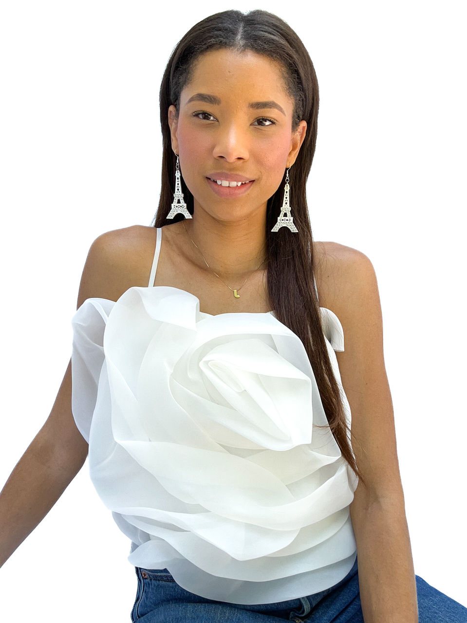 Show off your femininity in this Morning Blossom chiffon floral crop top featuring an elegant sweetheart neckline, oversized flower at front, adjustable strap, and shirred back panel for a comfortable body-hugging fit. Easy to dress up your favorite pair of denim or pair it with a coordinating skirt for an upscale outfit.