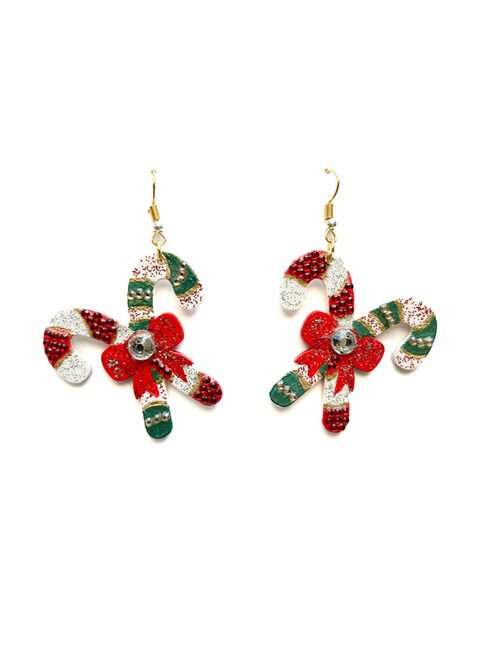 Jade Alycia’s Sweet Twist 18K gold-plated statement earrings make every holiday moment a little sweeter. Designed in a classic dual candy cane silhouette, this festive pair showcases a swirl of holiday color wrapped in a bold bow and topped with sparkling hand-set crystals. Style them best with rich reds, black sequins, or winter whites.